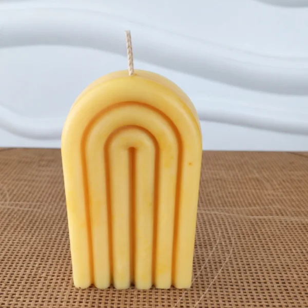 • Bougie artisanale jaune en forme d’arche pour la gestion des émotions, fabriquée à la main en France.